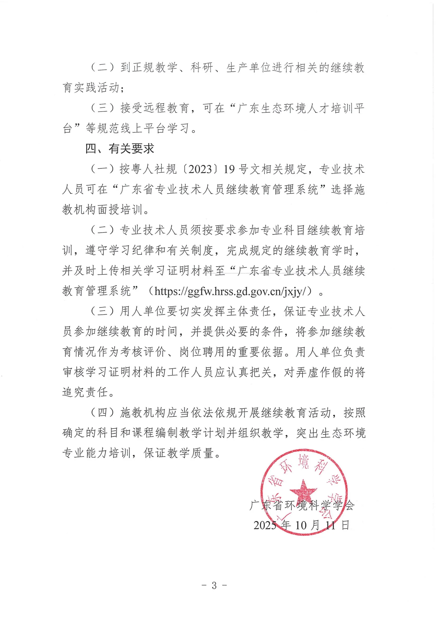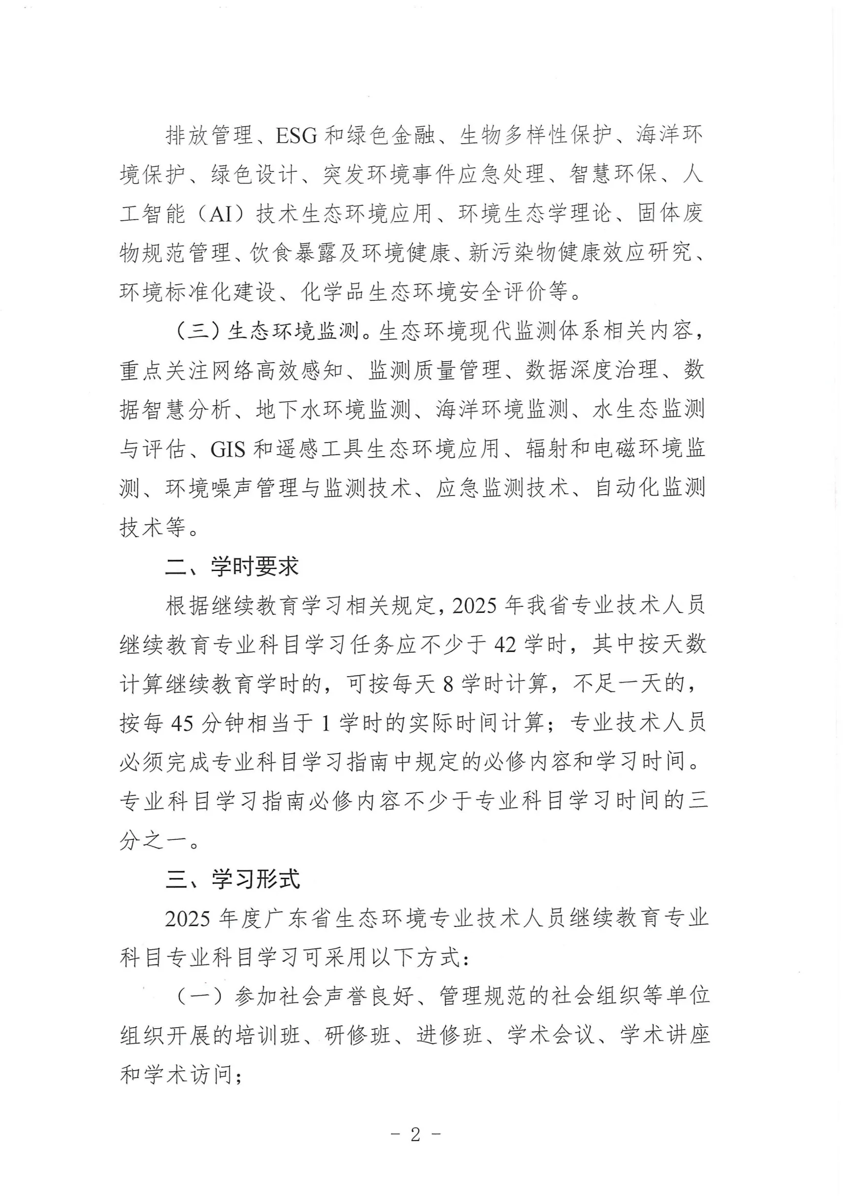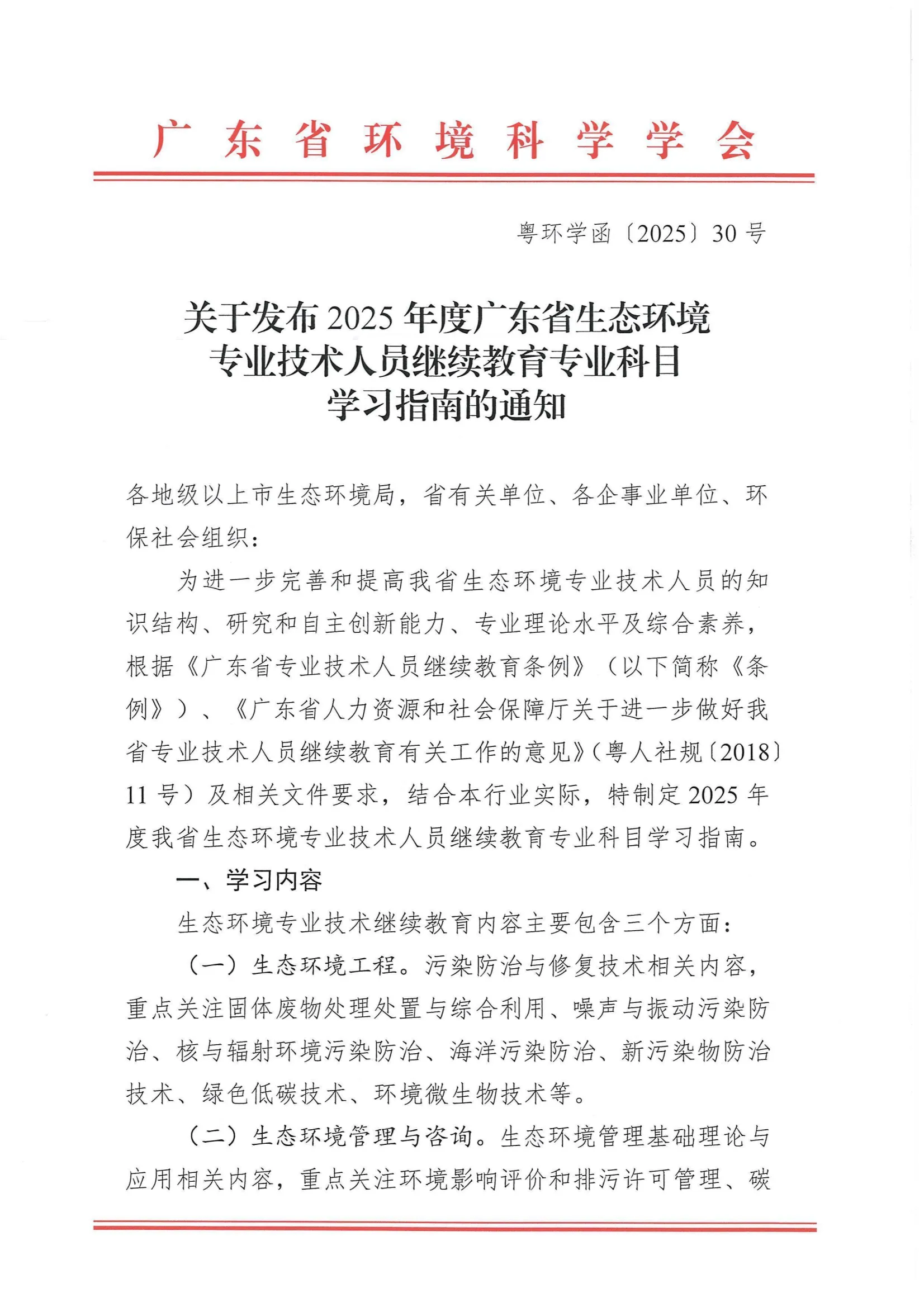 关于发布2025年度广东省生态环境专业技术人员继续教育专业科目学习指南的通知